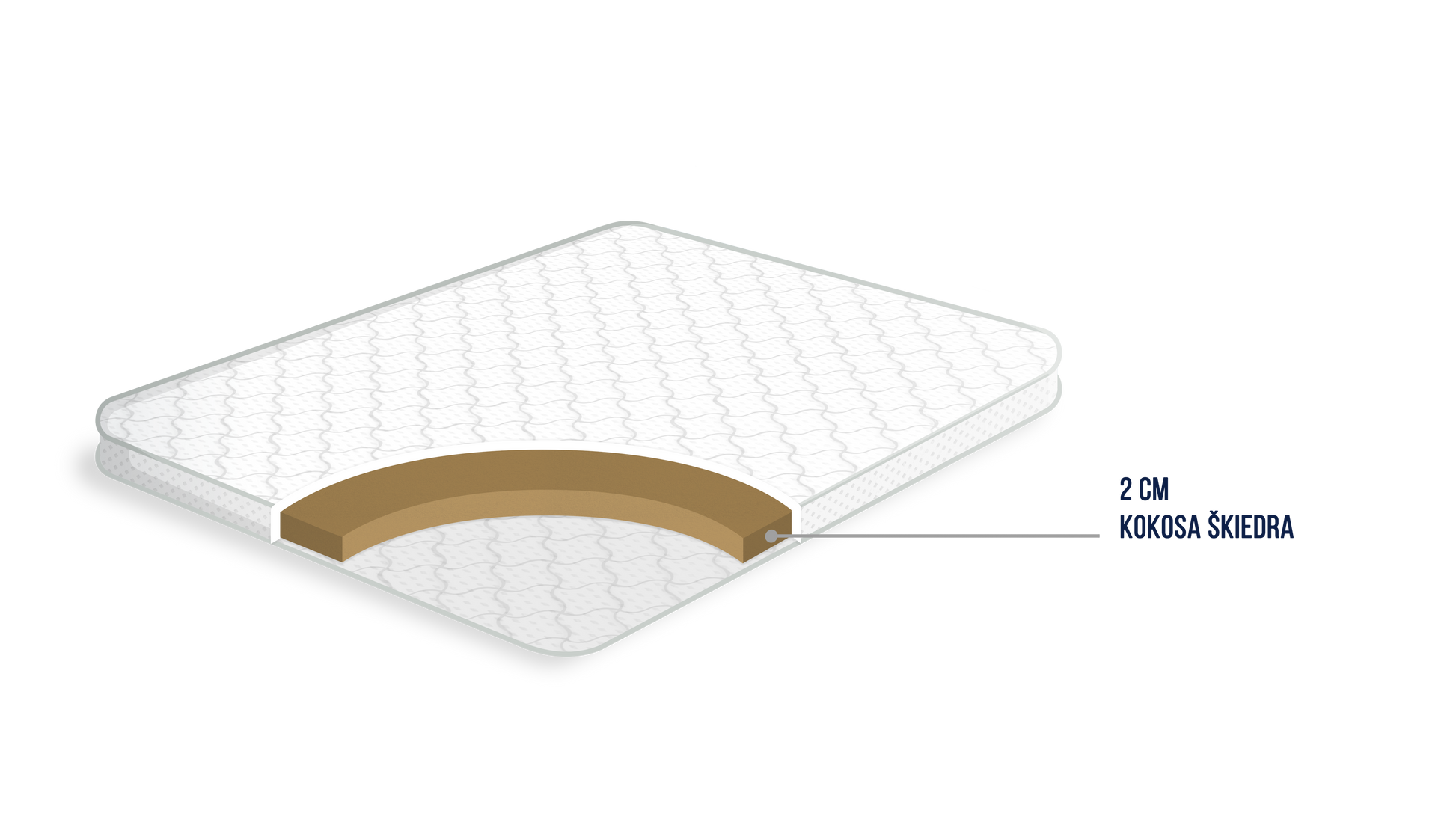 Kokoss ir dabīgas izcelsmes materiāls, kas nodrošina matracim stingru virsmu un lieliskas ortopēdiskās īpašības. Ortopēdi rekomendē kokosa virsmatračus arī mugurkaula slimību profilaksei.