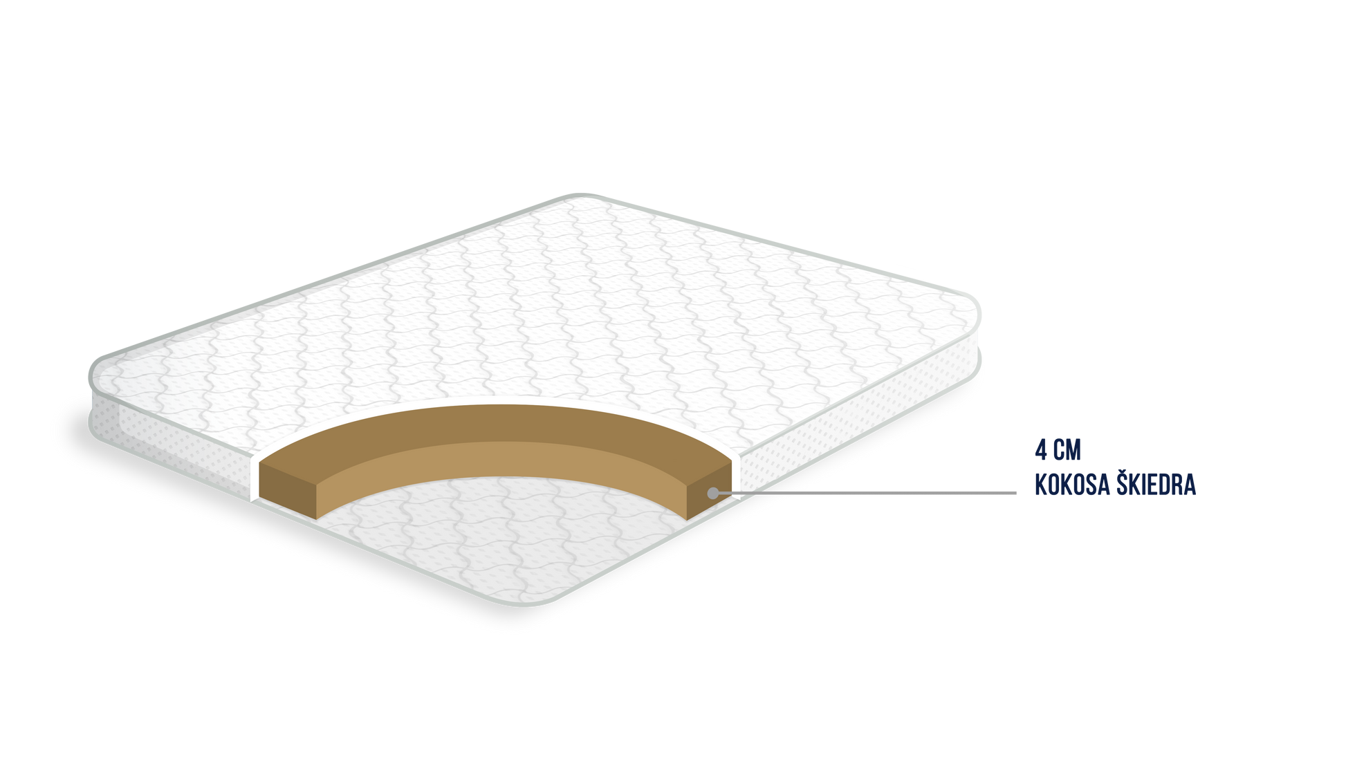 KOKO ir ideāls izvēle tiem, kas meklē dabisku un augstas kvalitātes guļamistabas risinājumu. Šis virsmatračis sastāv no kokosa, un tas ir 4 cm biezs. Kokosa šķiedras nodrošina stingru virsmu un izcilas ortopēdiskās īpašības, veicinot muguras un ķermeņa atbalstu.