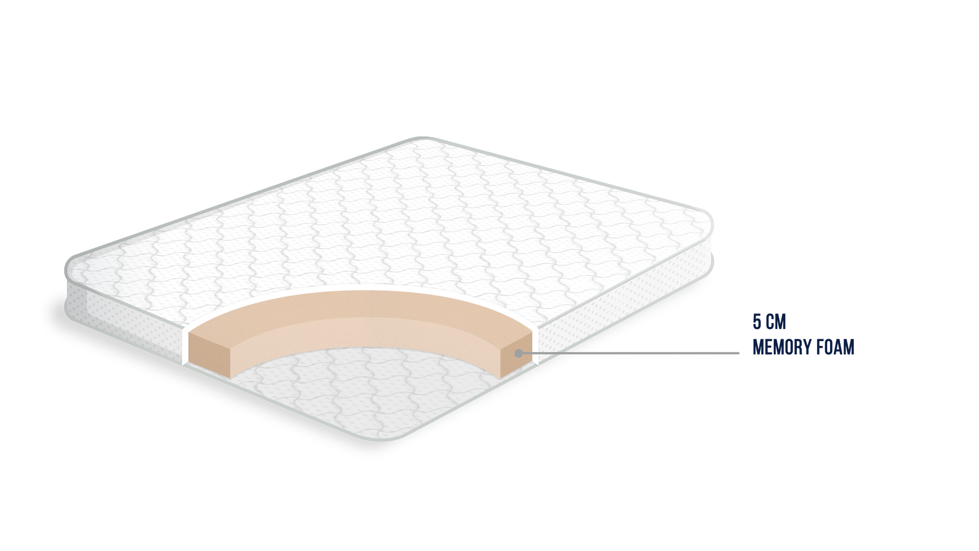 Memory-augstas kvalitātes memory foam virsmatracis. Matracis pēc cietības skalas ir mīksts ar vērtējumu 1.