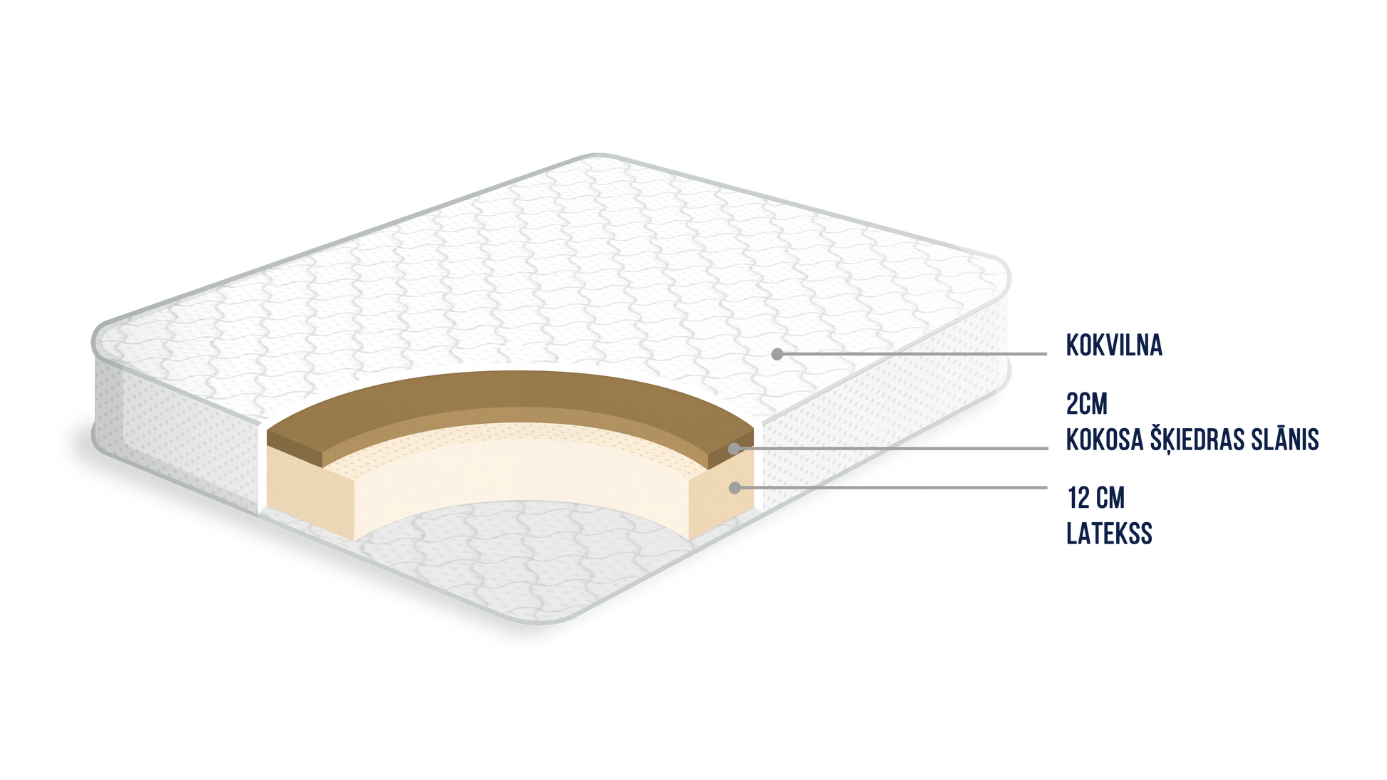Kokoss ir dabīgas izcelsmes materiāls, kas nodrošina matracim stingru virsmu un lieliskas ortopēdiskās īpašības. Ortopēdi rekomendē matračus ar kokosa šķiedru cilvēkiem ar balsta un kustību aparāta slimībām, kā arī mugurkaula slimību profilaksei.